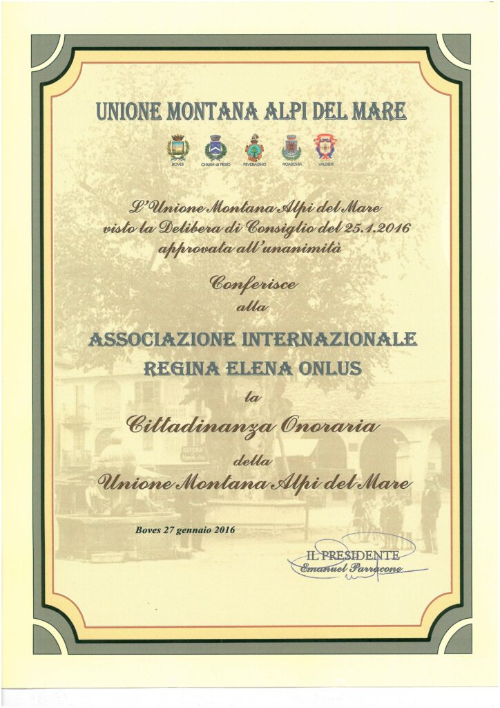 Cittadinanza Onoraria Unione Montana Alpi del Mare